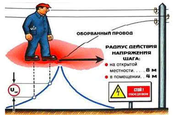 • Не ложиться на землю! Это увеличивает площадь контакта с землей и риск поражения током, растекающимся по поверхности.